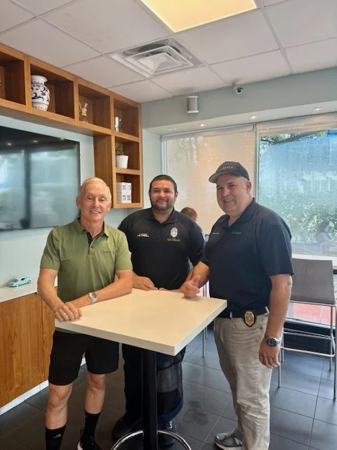 MBPD Captain Lazano & our new Neighborhood Resource Officer Liz Rodriguez with SoBe West Board members Tim Carr and Robert Primavera