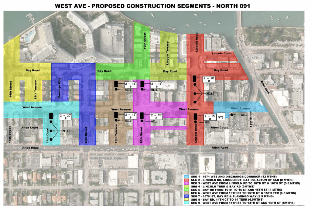 Segment one covers what you have been seeing for a few months (West Avenue between Lincoln Rd and 17th Street and the pump area in the parking lot next to the post office.